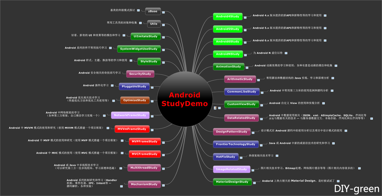 说明:不同的板块在思维导图中已经用不同的颜色做了区分