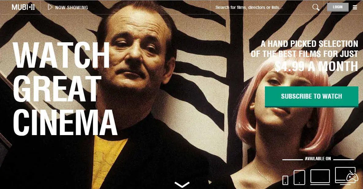 多年来MUBI坚持提供一系列精选的小众艺术电影(通常不会出现在Netflix或者流媒体视频另一巨头Hulu上),培养它的用户的品味。(在起初成立时,MUBI采用的名字是“The Auteurs”,2010年更名为MUBI——这个词是“movie”一词的浊音衍变版本,也是尼日利亚一座城市的名字。)周一,MUBI的美国版网站上的选片包括Bernardo Bertolucci七十年代的经典《The Conformist》,和朴赞郁的《Sympathy for Mr. Vengeance》。偶尔,MUBI也会播放像《罪恶之城》这样相对比较“主流”的电影(目前这部片可以在MUBI法国版网站上看到),但还是小众影片占大多数。MUBI每天添加一部新片,同时撤掉一部旧片。也就是说,任何时候你都只有30部电影可看。