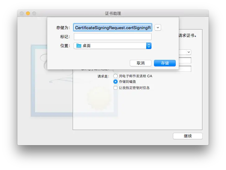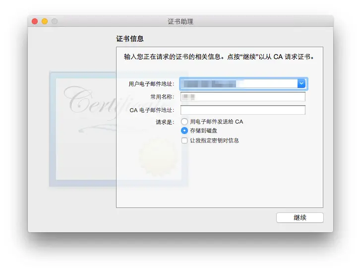 打开钥匙串访问,点击电脑左上角的钥匙串访问–证书助理–从证书颁发机构请求证书