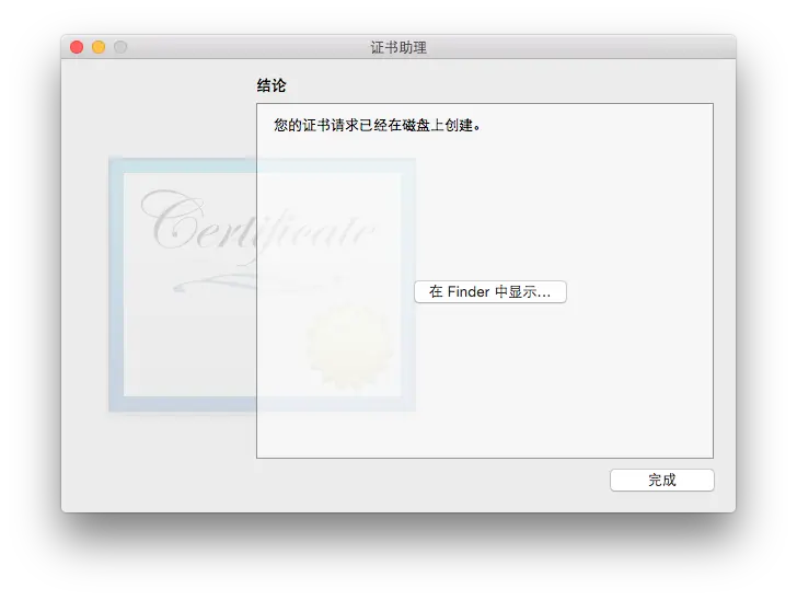 注:一般一个开发者帐号创建一个发布证书就够了,如果以后需要在其他电脑上上架App,只需要在钥匙串访问中创建p12文件,把p12文件安装到其他电脑上。这相当于给予了其他电脑发布App的权限。
