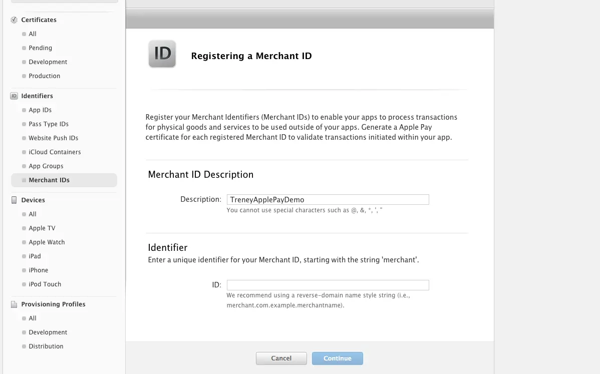 request.merchantIdentifier = @"treney.com.Apple-Pay";