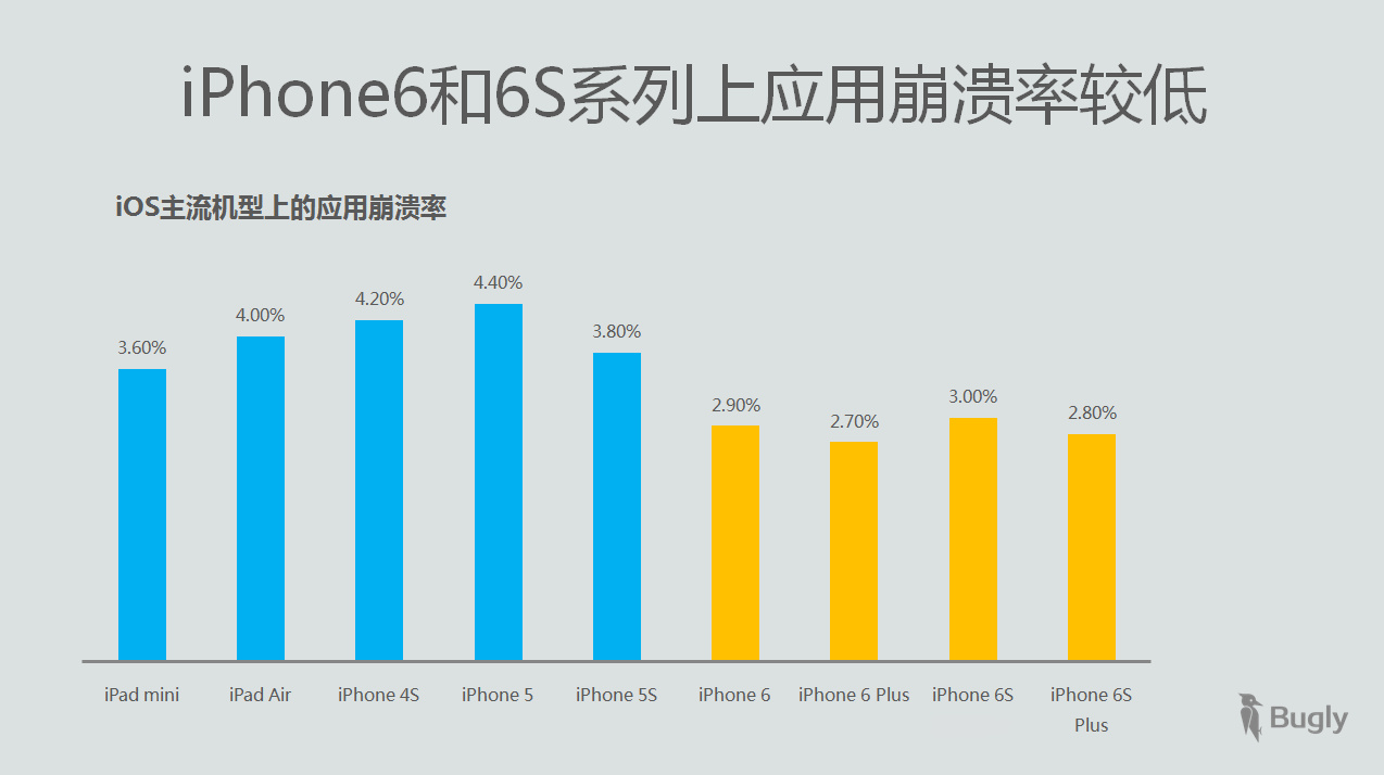 iPhone 6 和 6S 系列机型,崩溃率均不超过 3%。
