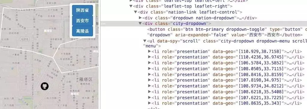 从地点到地图上显示拿Bootstrap实现一个Dropdown是一件很容易的事,我们只要动用一下相应的模板就好了。难就难在,如果去与地图交互。