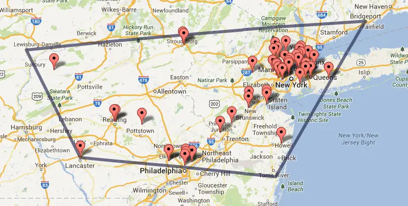 2多边形搜索所谓的多边形搜索就是画一个圈圈(任意多边形),然后你就可以去约这个圈圈里的人,如下图所示: