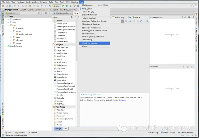 4、点击检测升级Android Studio