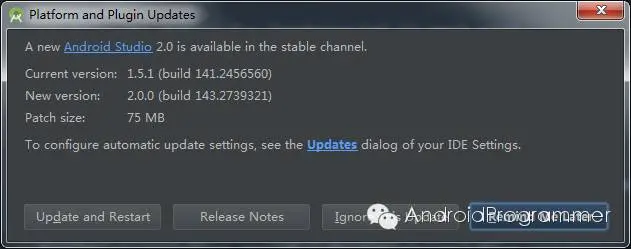 就在昨天,Android Studio终于迎来了2.0正式版更新(此版本最重要的两个更新是:即时运行和 GPU Profiler。同时还有全新的 Android 开发套件,速度强行提升 50 倍),之前Android Studio Preview和Beta版本还存在很多bug,因此不建议更新。