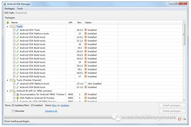 笔者:重新打开Android SDK Manager,发现居然能在线更新 了