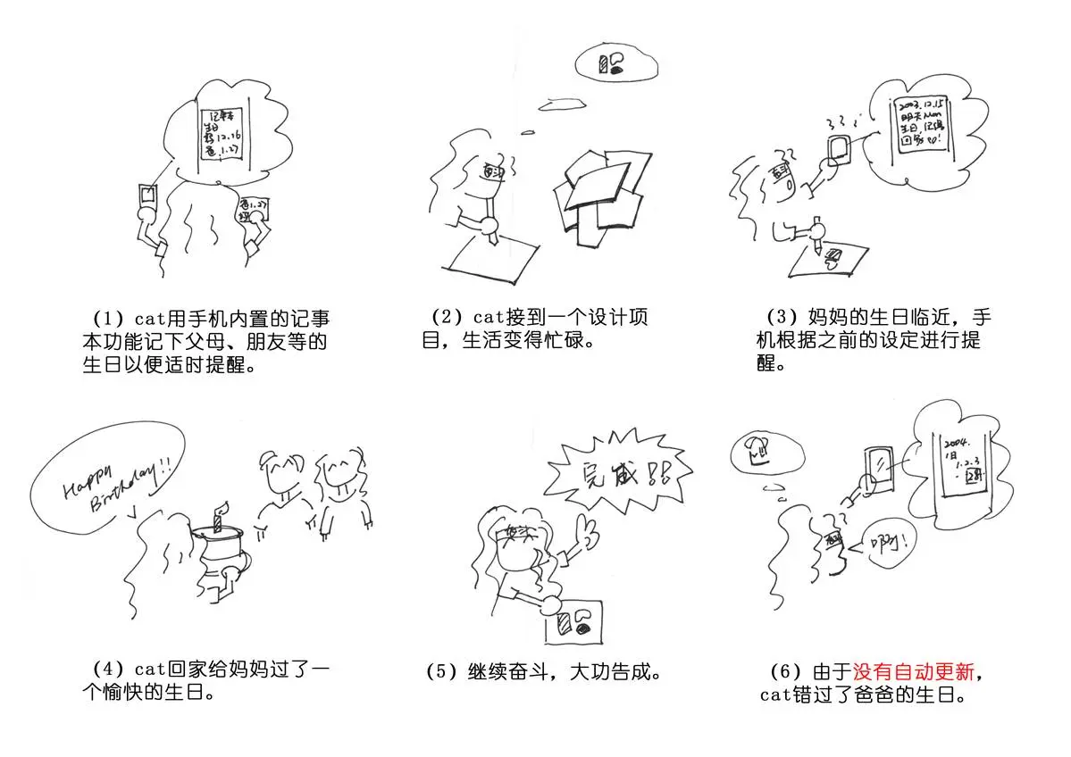 另外,故事板不仅仅是设计师头脑中假想情境的具象化,他还可以使一些模糊的用户需求更加具象更有说服力,在设计沟通的过程中能发挥巨大的作用。
