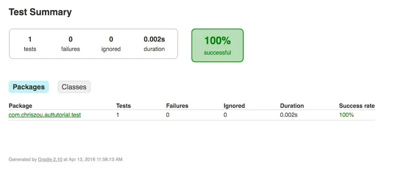 每个test case的报告可以在project_root/app/build/reports/tests/debug/index.html 这个xml里面看到。大致如下图: