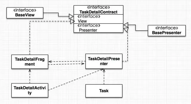这节我们就具体来看官方示例到底是如何实现mvp的。这里我们先看下总体的轮廓,关于项目中业务代码我们仅列出了任务详情页(taskDetail)的相关类,其他业务代码类似。