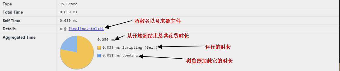 可以看到,每一次点击事件都伴随着一些列的变化:html的重新渲染,界面重新布局,视图重绘。很多情况下,每个事件的发生都会引起一系列的变化。在区域2种,我们可以通过点击某一个横条,然后在区域4种更加详细地观察它的具体信息。我们以执行函数x为例观察它的执行期的状态。