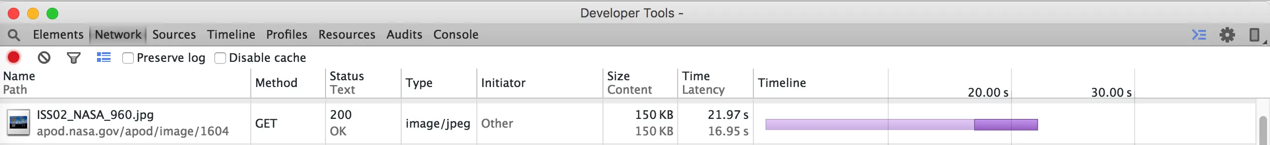 - Timeline 显示了所有网络请求的瀑布流