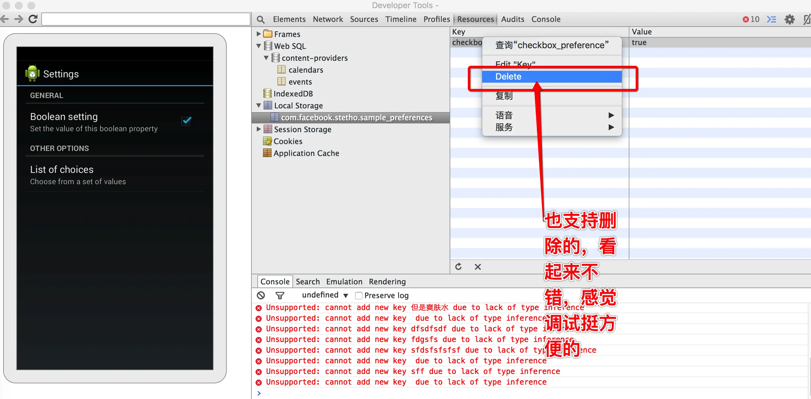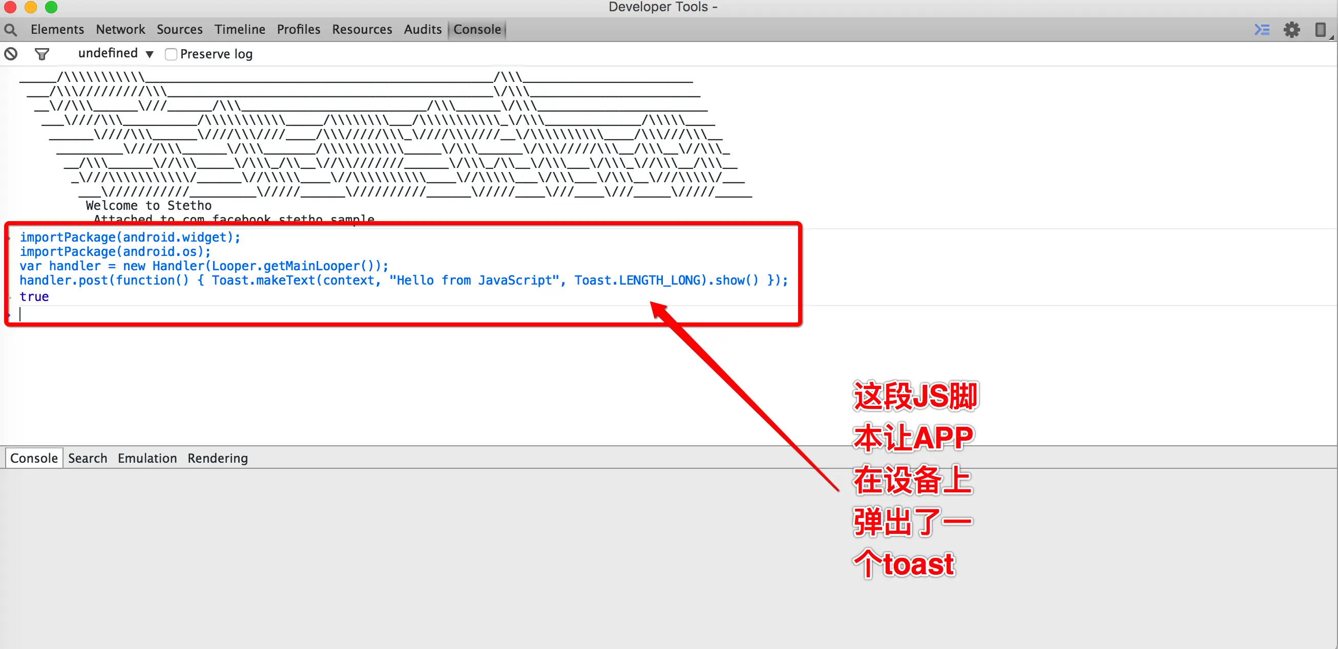 Chrome开发者工具原生支持JavaScript,所以Stetho也提供了JavaScript的支持。