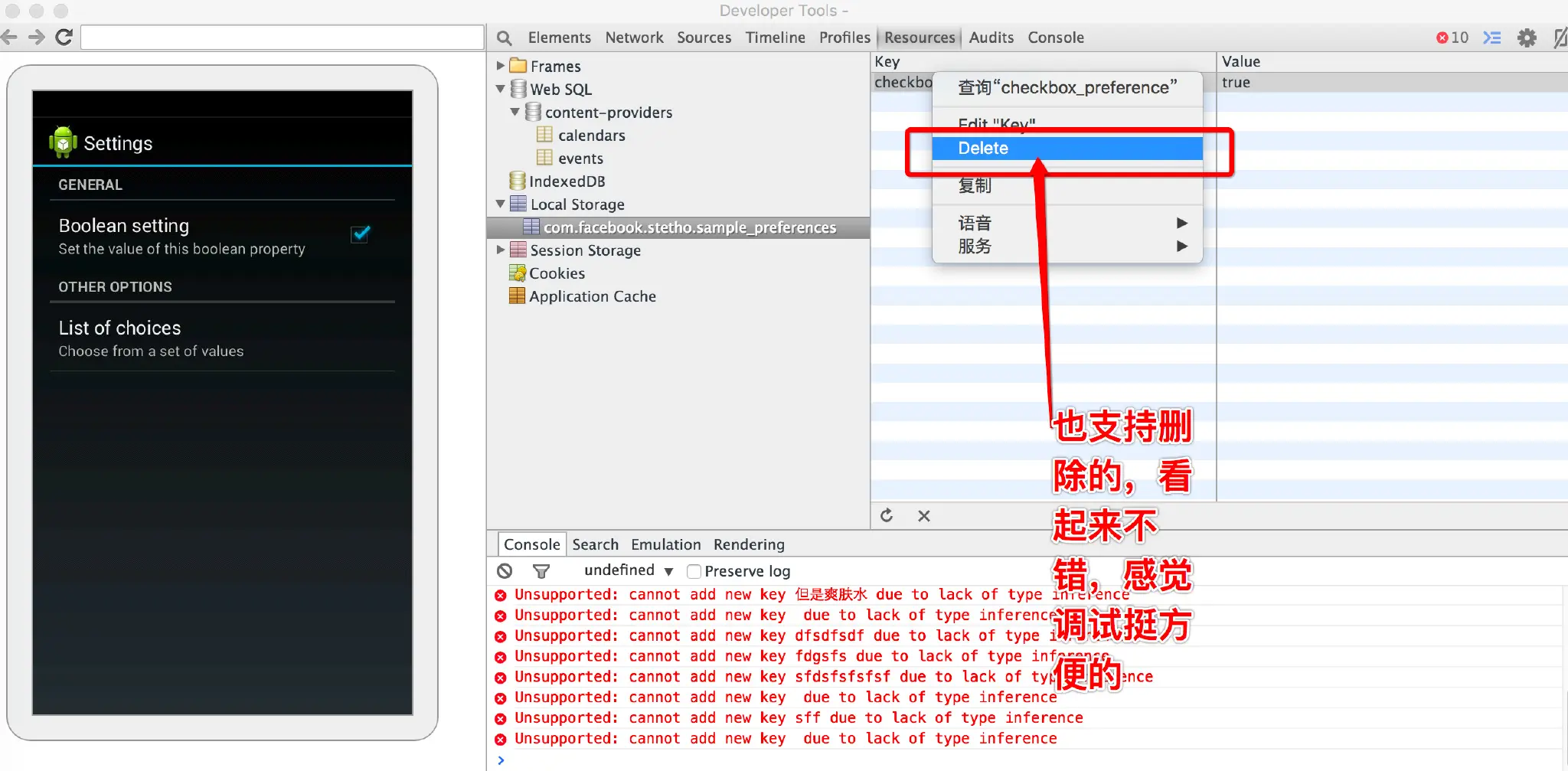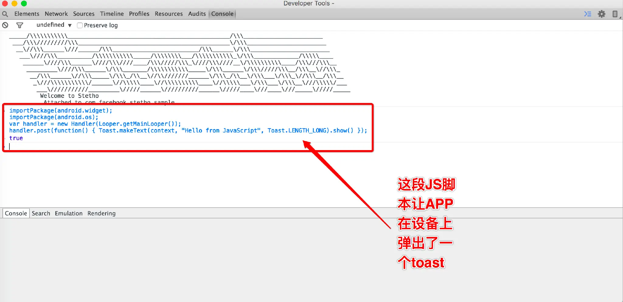 Chrome开发者工具原生支持JavaScript,所以Stetho也提供了JavaScript的支持。