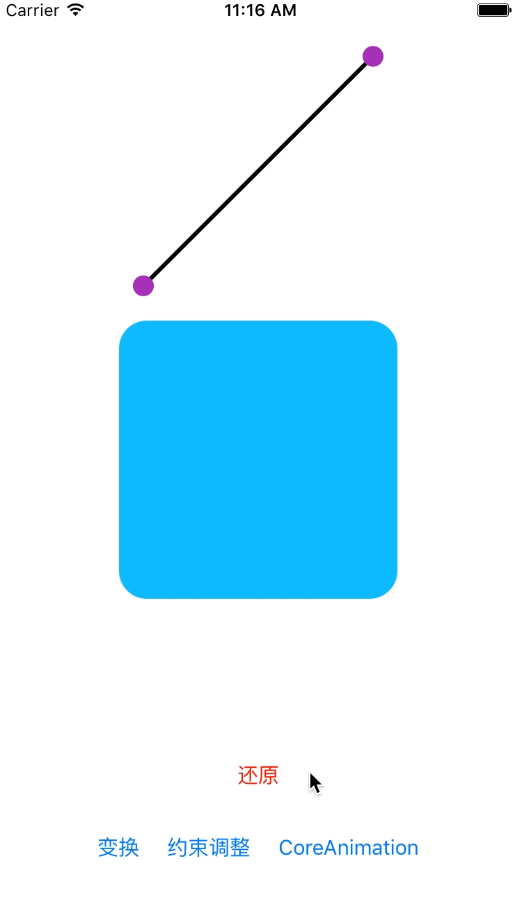 都是套路,唯一值得注意的是,我们需要在闭包内显式调用 superview 的 layoutIfNeeded() 方法,因为约束在被修改后需要在下一个 RunLoop 周期中剩下,也就是说,闭包内的设置完成后,view 的 frame 并没有发生改变,所以动画就不能产生,但是如果我们强制重新布局,frame 在闭包内发生改变了,动画就能够产生了。