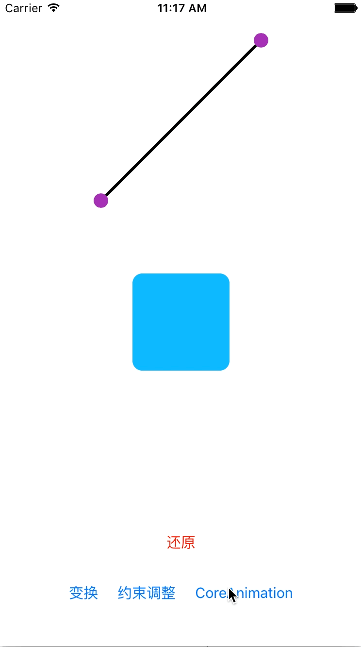 你可能注意到了,蓝色方块还被我添加了约束,目的是为了下文演示约束动画。