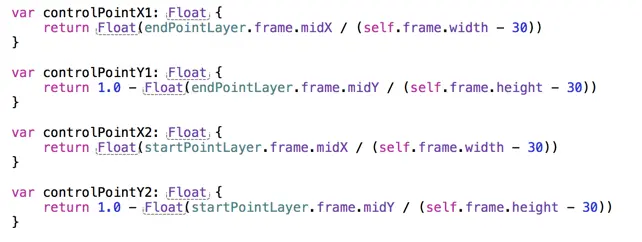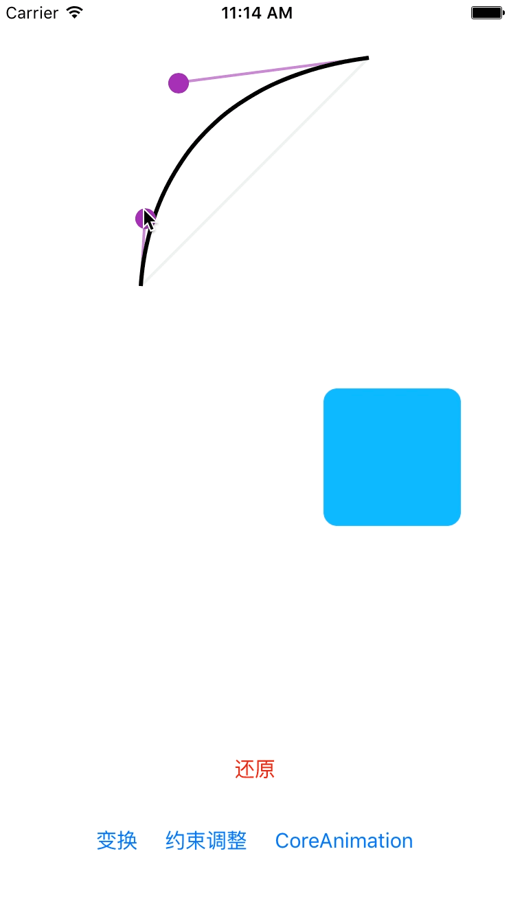 缓动函数,这个在 iOS 中很有意思,你除了可以使用系统自带的几种缓动效果以外,还可以自己调整它的参数,做出自己的缓动曲线,而这种曲线的生成竟然和 CSS3 的缓动函数一样,使用两个控制点,拉出一条曲线,这条曲线就反映了时间渡过的快慢。