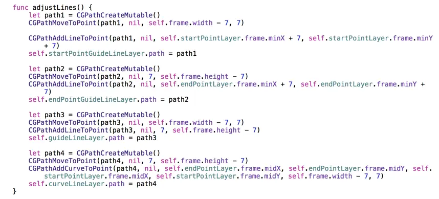 有关这个曲线创建器,主要就是几个 CAShapeLayer,然后修改 path 属性使其吻合最终的数值,下面是一些关键代码: