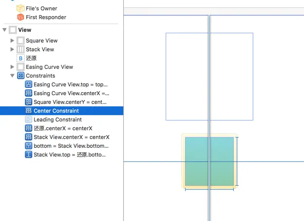 每错,这个蓝色方块被添加了两个能够决定 X 坐标的约束,一个被暂时 disabled 了。