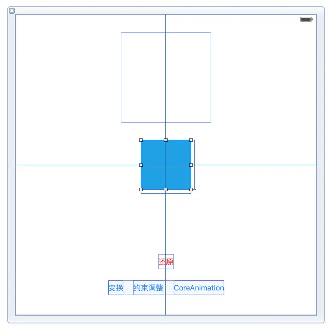 为了方便演示,我首先在 Interface Builder 中拖拉了一些控件,那个蓝色的方块就是今天的主角~