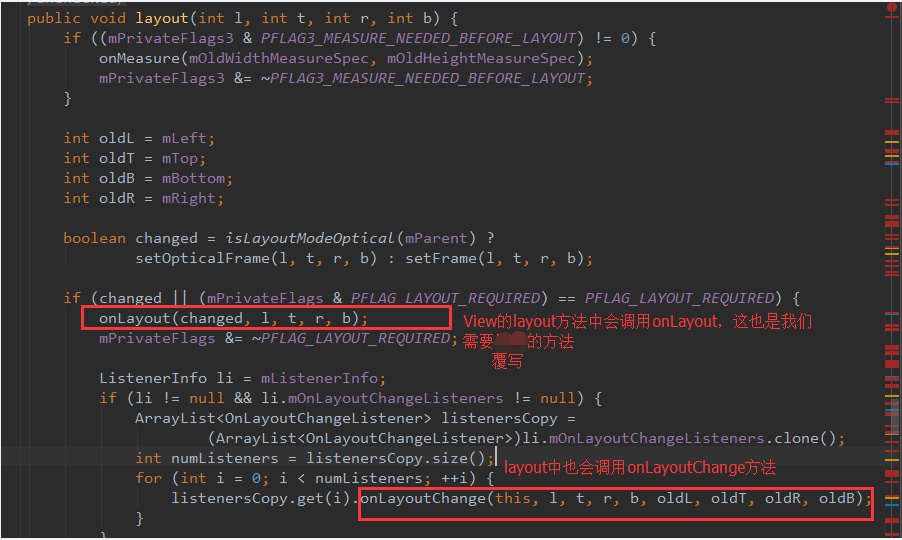 通过下图,我们可以看到view的layout方法调用了onLayout(),onLayoutChange()。