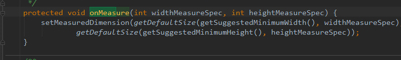 首先在View类中有measure 方法中调用了onMeasure 方法,将measureSpec传递给onMeasure 方法。并且调用了我们每次onMeasure覆写之后都必须调用的方法setMeasuredDimension。