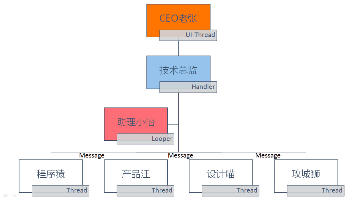 技术总监(Handler):所有技术、产品层面的事情都必须经过技术总监,并且向老张做最后的汇报。