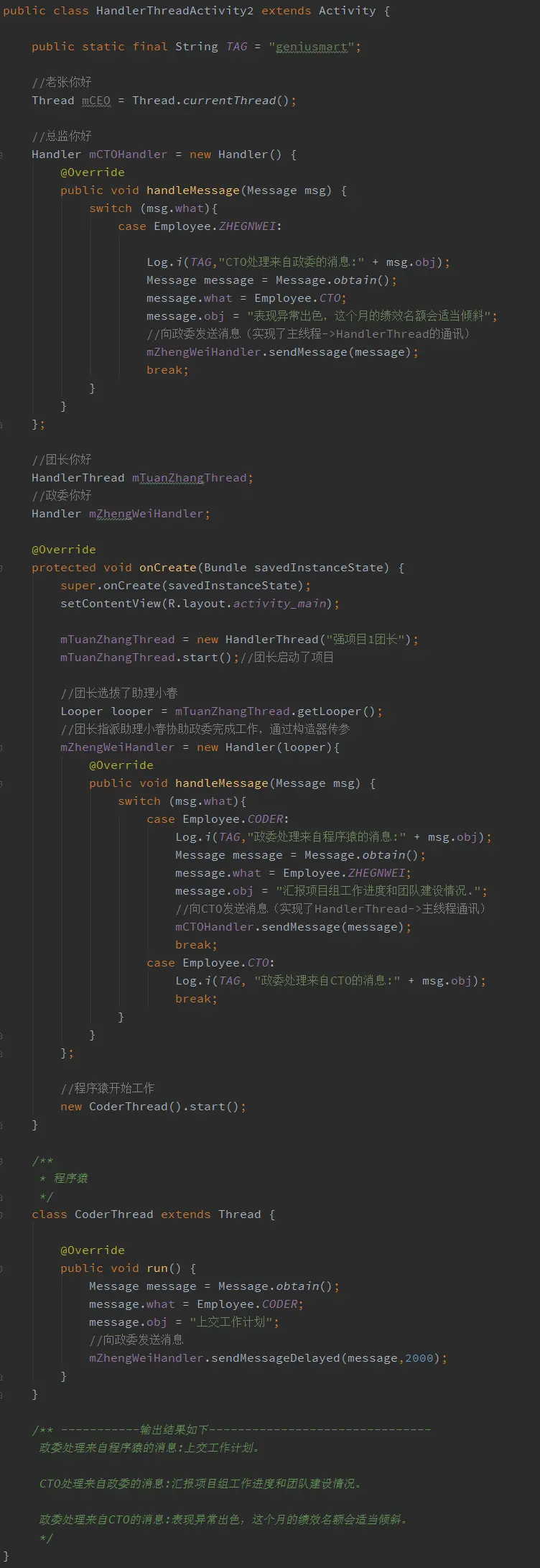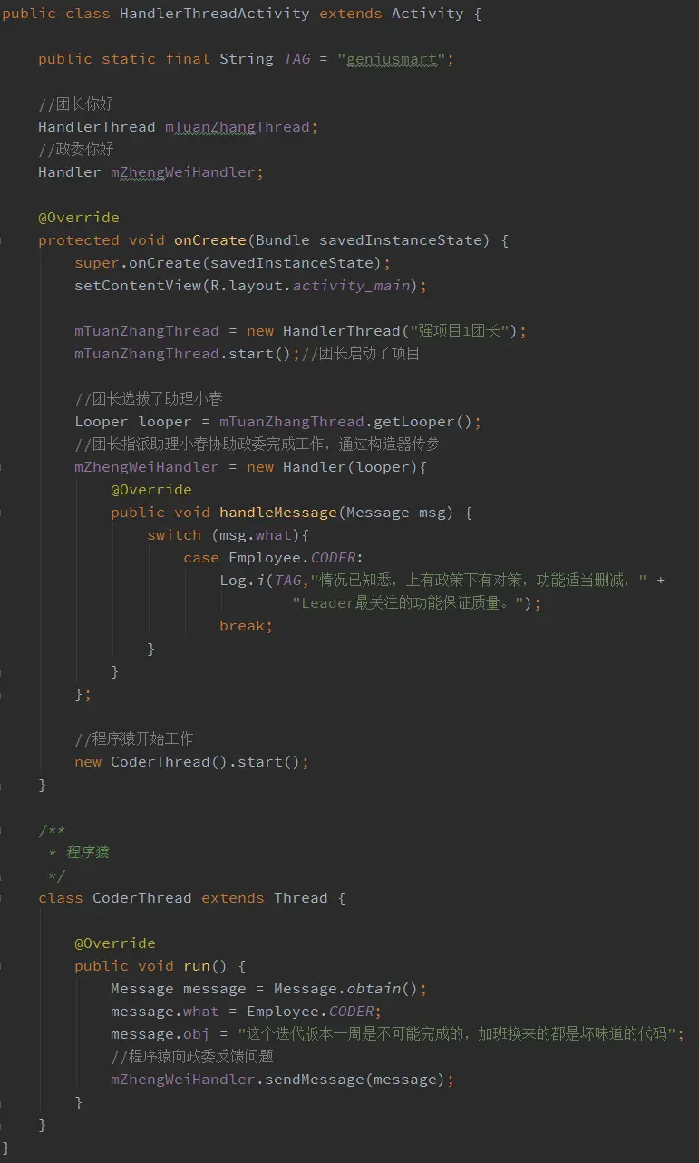 通过对HandlerThread源码的分析,我们发现,CTO在选拔团长时,都是参照自己的模样来找的,因为他们有几个共同的特征: