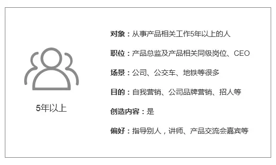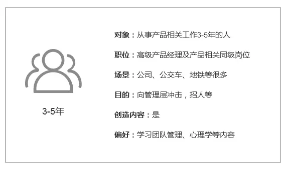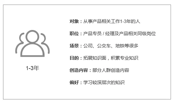 当用户为在职产品人后,就需要关注一些深入点的知识,扩展知识面和知识深度,目标感更强,对信息的筛选要求会更高,并已经建立了一定的个人圈子,更想结交更高层次的产品人。