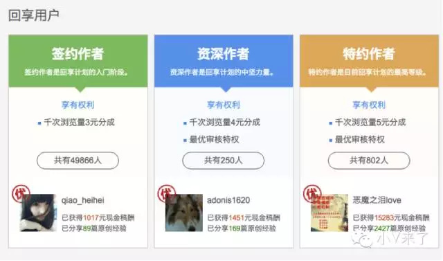 对于对用户的贡献行为进行奖励,奖品的形式有些采用的是有真金白银价值的东西,少部分采用道具的形式。在互联网早期阶段,网民贡献的意愿是非常高的,因为他们第一次获得了跟全世界人民沟通交流的机会,憋了大半辈子的话终于有了发泄的途径,那种尽自己绵薄之力便能为他人带来巨大帮助的成就感也让人畅快淋漓。现在不一样了,发声太容易,网络已经聒噪得让人厌烦,乐趣少了很多不说,付出很大努力贡献内容到头来对别人也就几毛钱用。所以,积分奖励便应运而生。但上文已经分析了,基于金钱的积分奖励其实难以对用户心智产生影响。对用户来说,从来都没有人努力贡献一把只是为了去积分商城兑点礼品。用户的根本诉求要么是成就感,要么是实实在在的利益。撇开这两者,选择偷懒的方式给点小恩小惠可能反而有负面效果。有一个心理学案例(具体细节已记不清,如果有谁知道还望告知),大意是这样的:有一个店主,其店门前面是一个广场,有一群孩子经常在广场上溜冰,十分吵闹。店主想了一个办法,在一次孩子们溜冰时,对孩子们说很喜欢看他们溜冰,愿意每次给他们5美元奖励。孩子们想溜冰还有钱赚便欣然同意。随后,每次孩子们来溜冰,店主都会给奖励,但奖励金额逐渐减小,直到最后不再给奖励。孩子们看到店主每次给自己的奖励越来越少,心生不满,溜冰的热情越来越低,到最后看店主居然不给奖励了,孩子索性便不再去广场溜冰。这里,店主很聪明地将孩子溜冰的动机由喜爱转移到了金钱奖励上,因为金钱奖励不再,孩子溜冰的动机便消失了。同理,如果我们采用积分对用户贡献进行奖励,用户的动机便由社会规范转移到了市场规范,我们要知道在社会规范框架内很多行为是免费的,比如帮邻居搬家,但一旦放到市场规范内,这些行为可能需要高昂的报酬甚至无价。伍迪艾伦有一句经典名言“免费的性是最贵的”,你给女朋友送送花请请客也许就可以发生关系,但你直接付钱试试!绝大多数公司对用户贡献回馈的投入放在市场规范下用户是不屑一顾的。下面是百度经验的回享计划,可以看到一个用户分享169篇原创经验才获得1451元稿酬!你这不是侮辱别人的劳动成果吗?你说说你这样搞谁还愿意分享经验?