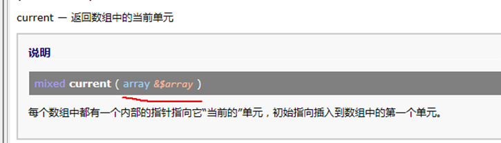 接着进入大括号执行体:var_dump(current($a)); 前面说道",current()操作的参数必须是引用数组(红线部分),如果不是引用数组的话会强制转换成引用数组(即结构体中is_ref__gc从0 -> 1)。"