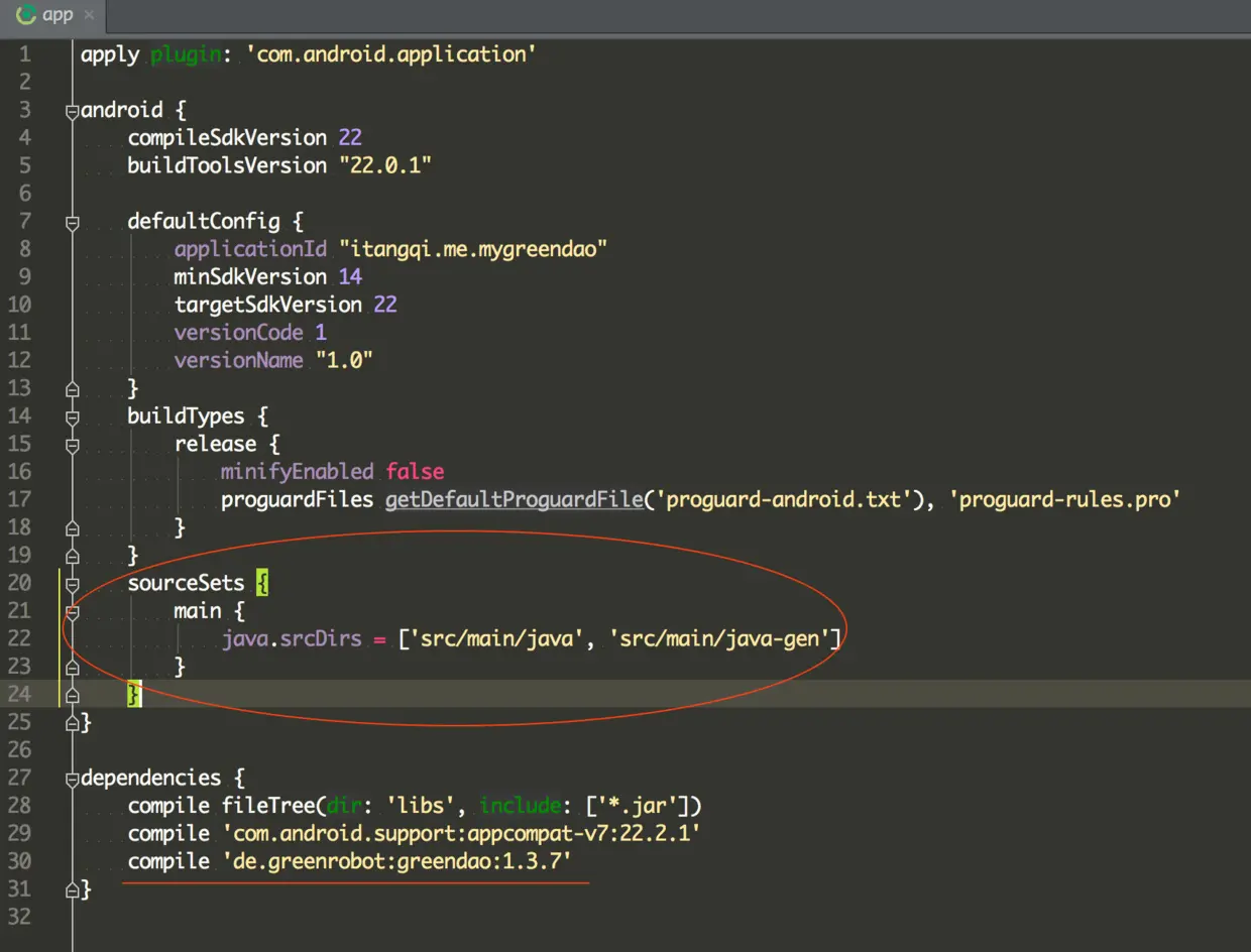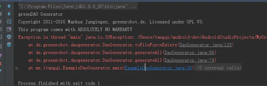 // 其实,输出目录的路径可以在 build.gradle 中设置,有兴趣的朋友可以自行搜索,这里就不再详解。 new DaoGenerator().generateAll(schema, "../GreenDAodemo/app/src/main/java-gen"); }