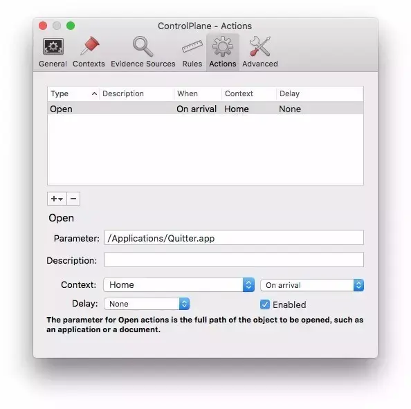Quitter 在菜单栏中提供了激活、关闭接管应用的操作,在非工作时间解除对以上应用的管制。但每次需要手动点击显然不符合我们一贯的宗旨,这个时候我们就可以翻出前段时间给大家介绍过的 ControlPlane 来进行自动化操作了。