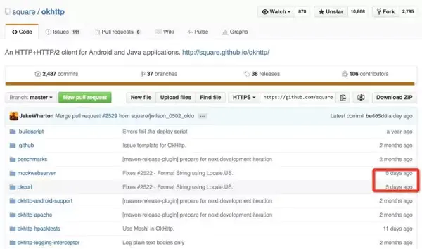 再看下Square公司的 Retrofit 和 OkHttp 项目最近几天还在更新代码: