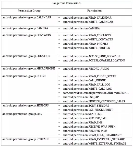 Dangerous Permissions: