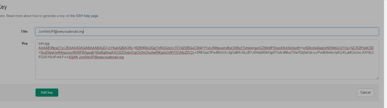3.输入ssh-keygen -t rsa -C "JunWeiUP@seeyouabroad.org" , 账号记得改成自己的连按回车就可以啦!