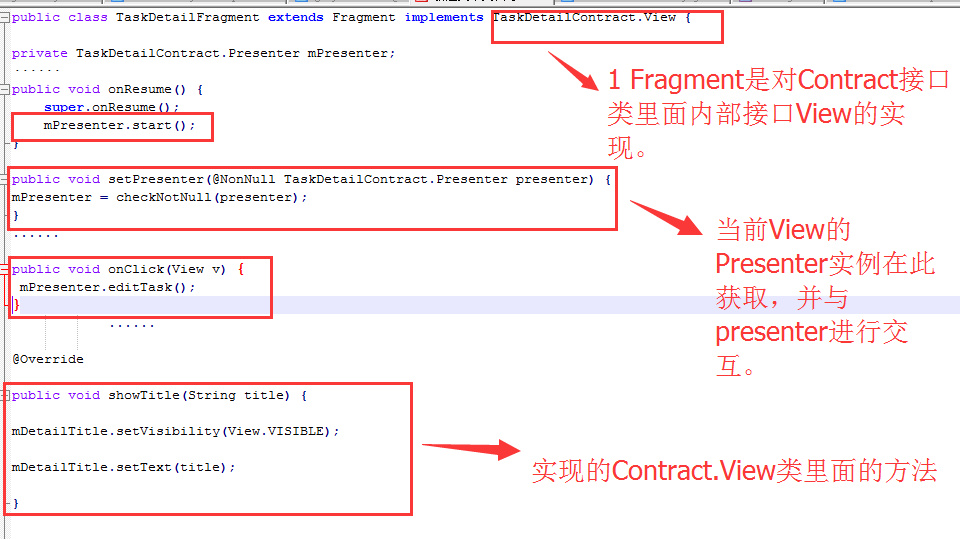 Fragment是MVP中View的实现类,它不与Model 层进行交互,只和presenter的实例进行交互。