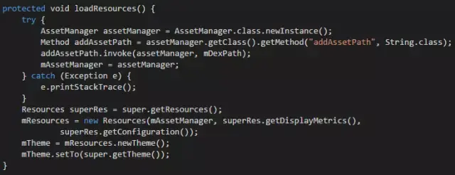 下面给出具体的实现方式,首先要加载apk中的资源,如下所示。