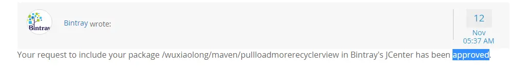 是不是配置少了很多哇,这里解释下,本来我想把项目名称改成pullloadmorerecyclerview,上传也成功了,但是依赖却找不到了,之前默认名是library,我改成了library,上传,这样算一个新的库,得重新审核,哎无奈,只能按照之前的方法去上传。