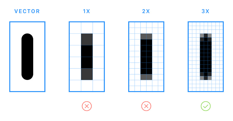 - 重新调整和重新定位图形来获得看上去视觉舒服的图形,尽管这样处理后位置或者像素值会有小数点,但在这个阶段视觉是重点。