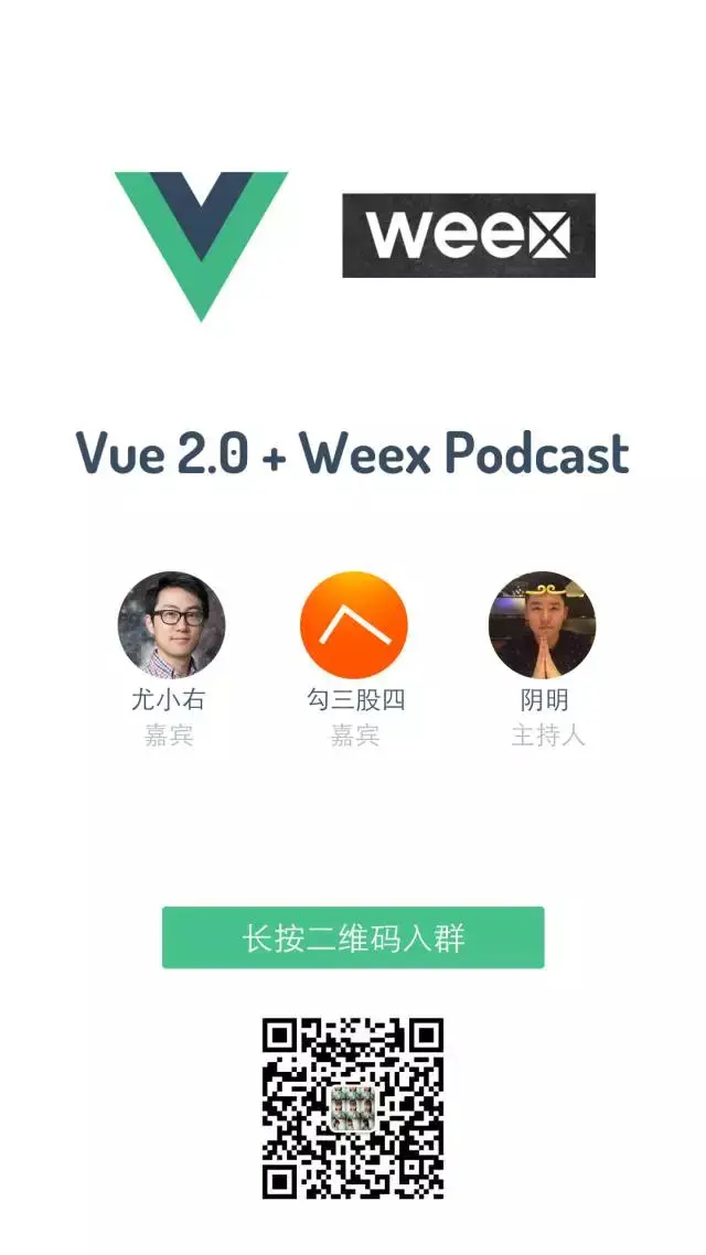 这次我们请到了尤小右和勾三股四两位嘉宾与稀土CEO阴明一起,在本周五晚九点为大家带来一场关于 Vue 2.0 的 Podcast 讨论,活动信息如下: