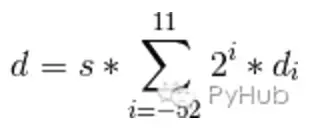 其中 d_i 是二进制中的 0 或 1。Python 中的浮点数都是双精度的,也就说采用 64 位来表示一个小数,那这 64 位分别有多少用来表示整数部分和小数部分呢?根据 IEEE 标准,考虑到符号位,双精度表示法是这样分配的: