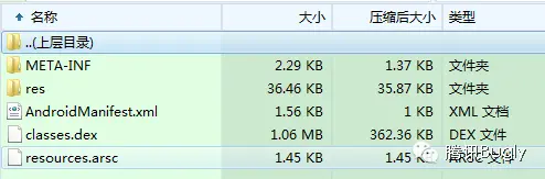 2.res:资源文件,里面的 xml 格式文件在编译过程中由文本格式转化为二进制的 AXML 文件格式。