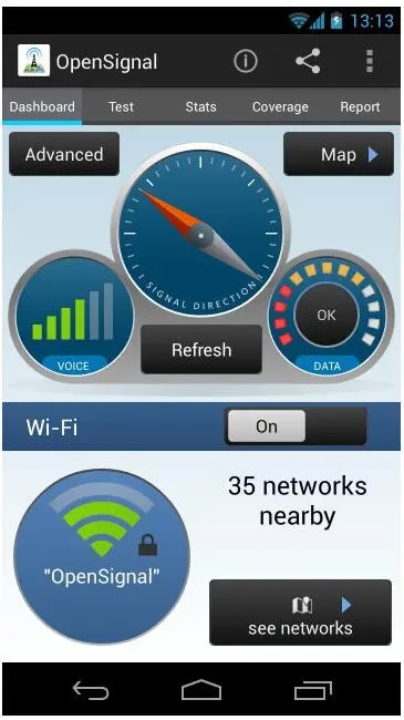 当我们有一系列不同屏幕尺寸的手机时,它们之间最大的不同就是屏幕的高度。因此ScrollView和ListView通常显示良好,虽然有时侯它们并不能完全覆盖整个屏幕。在OpenSignal中的Dashboard标签下我们可以看到所有东西,他们不需要滑动,然而对于许多高级控件来说,滑动展示并非一件坏事。如果你能够让你的应用适配各种不同尺寸的手机,那就很完美了,否则这两个控件会让你用最小的代价来保证你的应用适配大多数不同的屏幕尺寸。