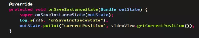 比如我们要保存当前视频的播放进度,这个显然控件没有帮我们实现onSaveInstanceState,所以就只能靠自己了,代码如下所示。