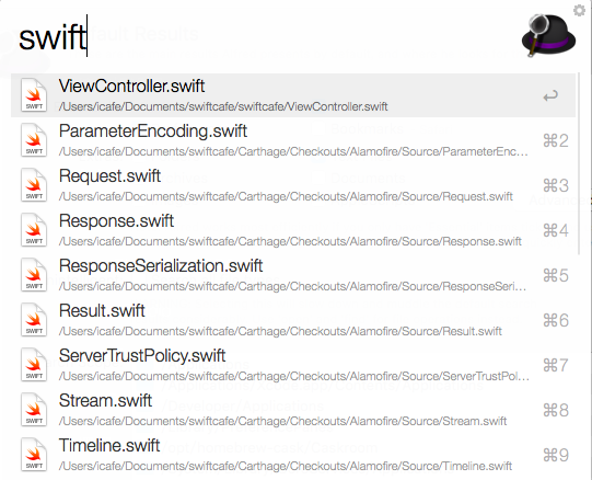 假如我们勾选了 Text Files,那么我们就可以搜索到任何的文本文件,比如我搜索 swift: