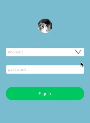 首先我们需要把所有控件的层次弄清楚,然后搭建整个界面。在demo中,在动画开始前可视的控件总共有五个 —— 用户头像、账户输入框、下拉按钮、密码输入框以及登录按钮,还有一个保存账号信息的列表在账户输入框下面。我们通过修改这个列表跟账户顶部约束值来使其下移出现: