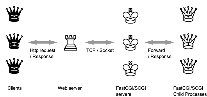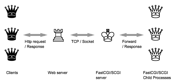 进一步,FastCGI还支持同时响应多个请求。为了尽量减少资源浪费,若干请求可以复用同一个与Web服务器之间的连接,且支持扩展至多个FastCGI服务器进程。FastCGI降低了Web服务器和应用程序之间的耦合度,进而为解决安全、性能、管理等各方面问题提供新的思路,相比一些嵌入式方案如mod_perl和mod_php更具灵活性。