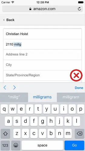 Old version of the Amazon’s mobile app had auto-correct mode turned-on for the address field, which caused valid entries to be overwritten by auto-correct.