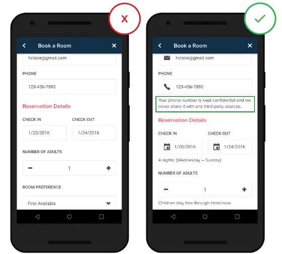 Takeaway: Don’t just rely on placeholders, include a label as well. As once a field has been filled out, the placeholder is no longer visible. You can use floating label which ensure users that they filled out the correct field.